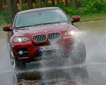 Х6 на сухом покрытии хорошо поворачивает на любой скорости, благодаря дифференциалу задней оси, которым управляет DPC – система распределения тяги. Эта система подобна трэкшнконтролю, до недавнего времени, устанавливающегося на болидах Формулы-1. Она с помощью электроники распределяет тягу от двигателя между внутренними и внешними колесами в повороте и обеспечивает необходимую поворачиваемость в повороте любой крутизны на любой скорости. Собственно от водителя требуется в повороте лишь одно – направлять машину рулем и жать на газ, за остальное он может не переживать, система сама распределит тягу между колесами и позволит без проблем прости поворот.